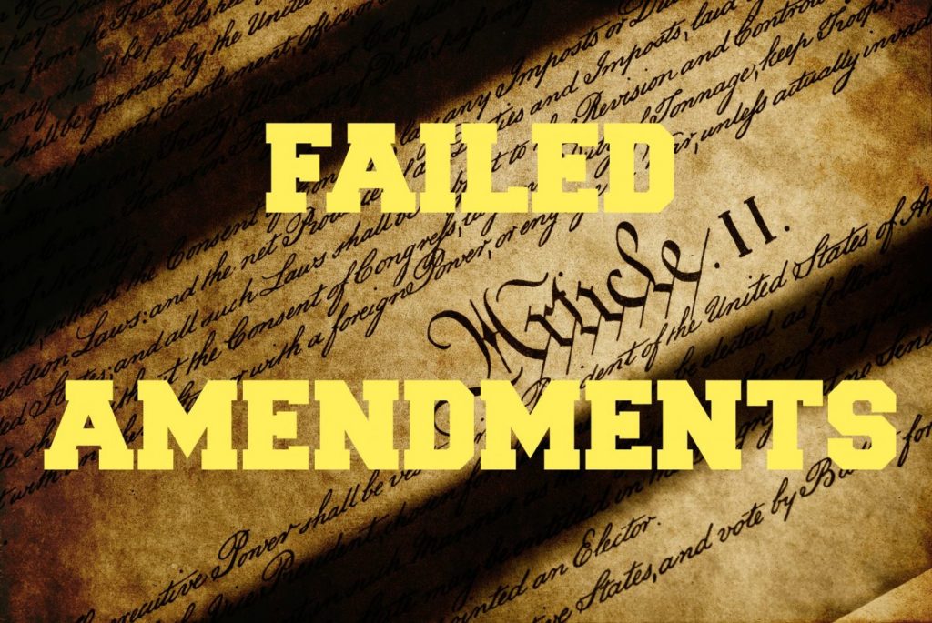 It’s very difficult to amend the U.S. Constitution. A potential amendment has to pass both houses of Congress with two-thirds approval, and then it has to be approved by the legislatures of three-fourths of the states. Since 1787, only 27 amendments have been adopted. Numerous others have been proposed…and rejected. Here are some notable rejects.